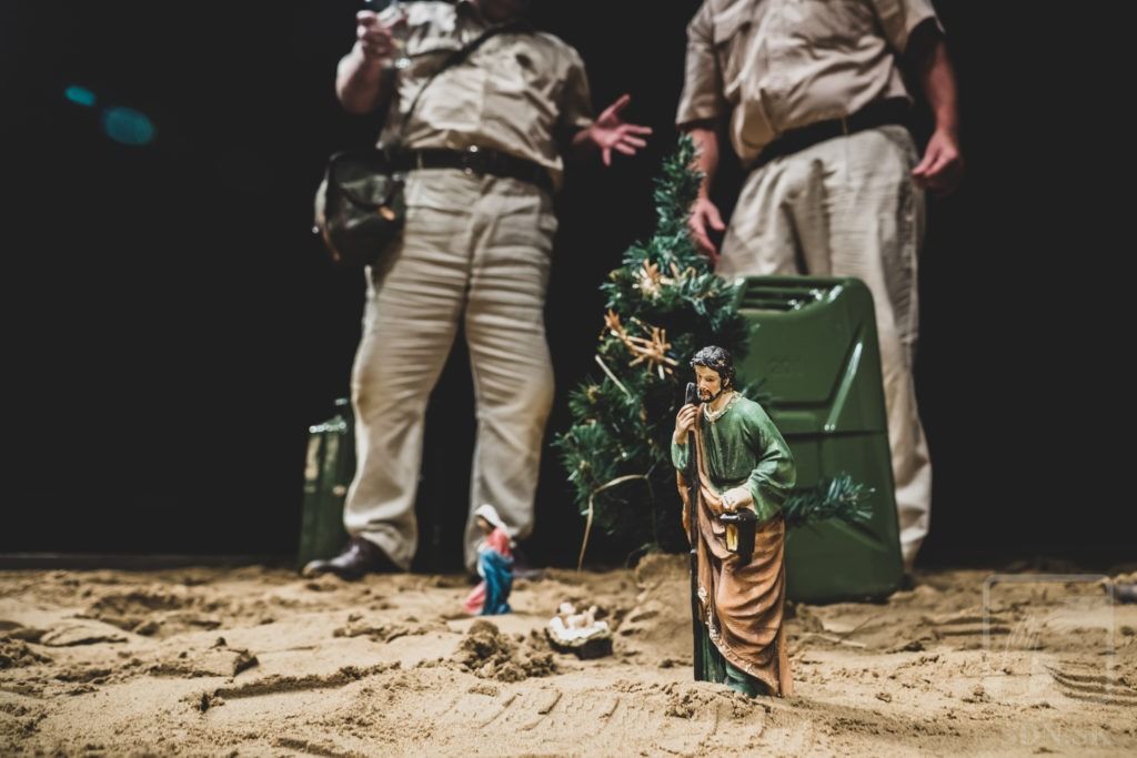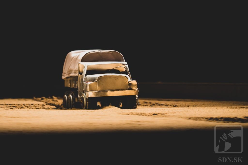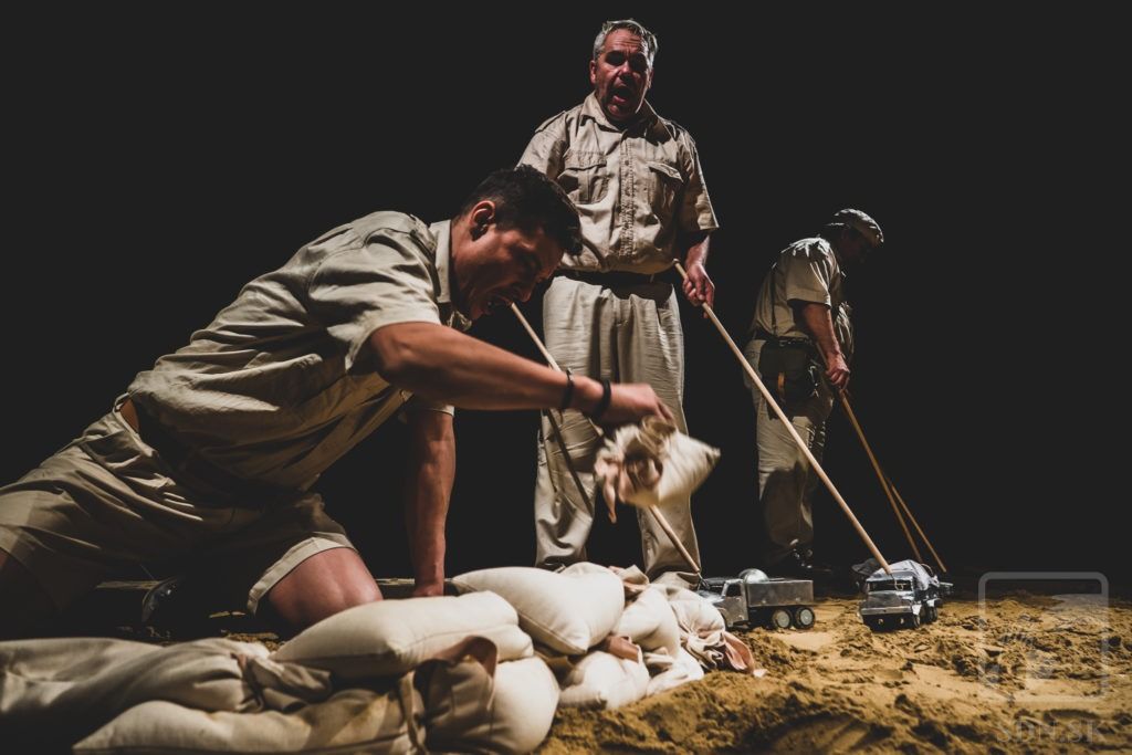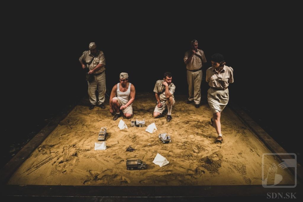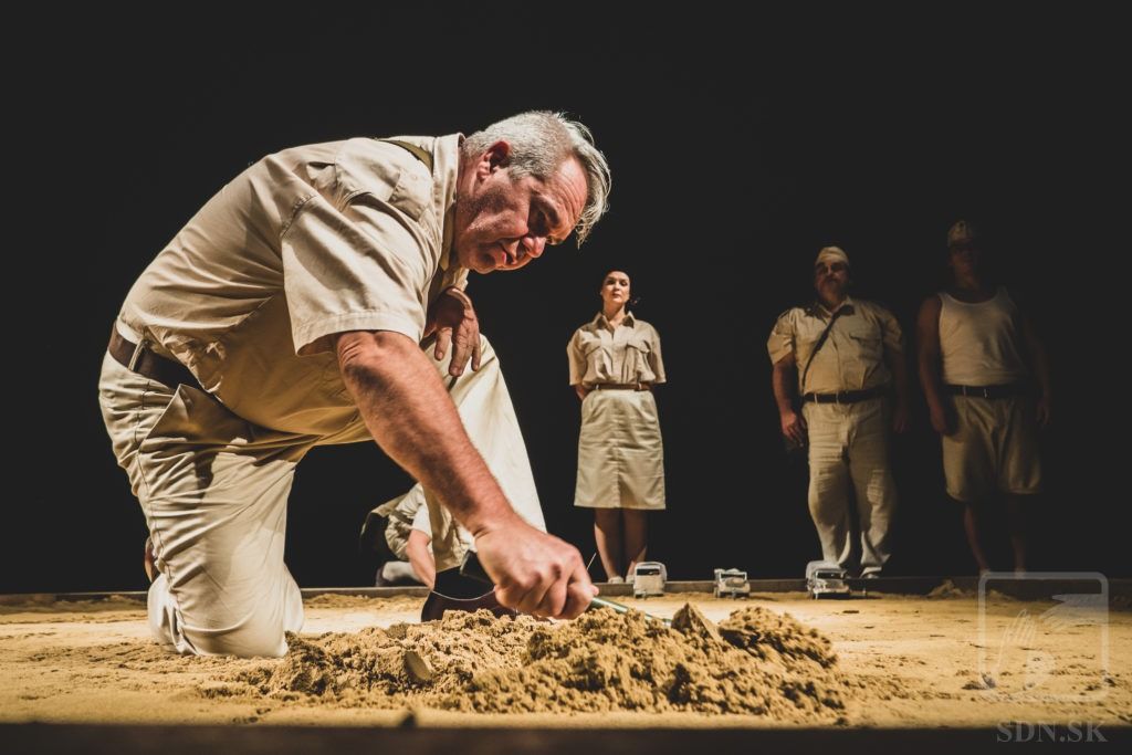V inscenácii sa používa piesok.