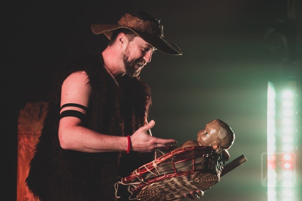 V inscenácii sú použité zvukové a svetelné efekty hromov a bleskov, hlasná hudba a dymové efekty.